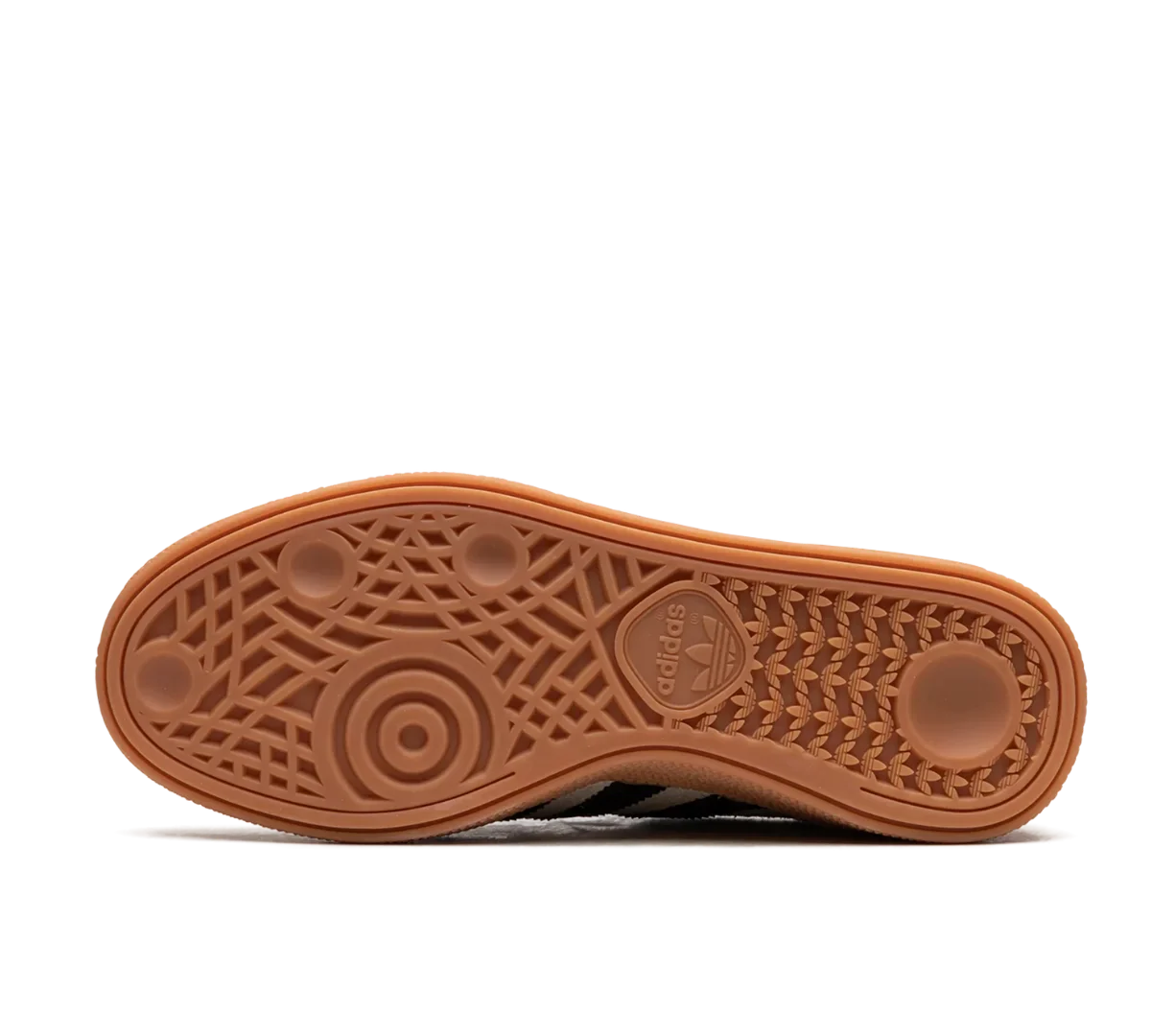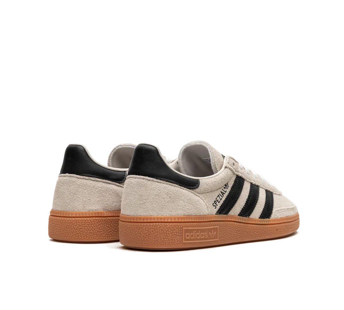 - Três listras em couro preto e logo ‘Spezial’ dourado, reforçando a identidade clássica da Adidas.